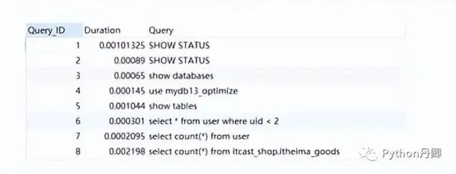 执行完上述命令之后,再执行show profiles 指令, 来查看SQL语句执行的耗时: