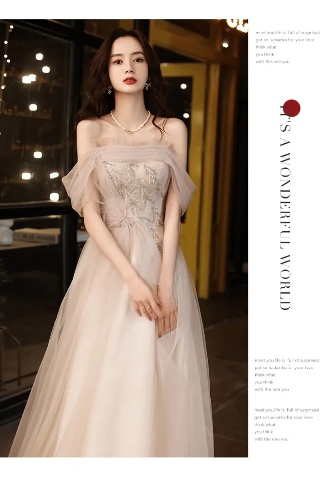 宴会晚礼服女2023新款小众高端气质主持人轻奢伴娘连衣裙香槟仙气的评论 (共