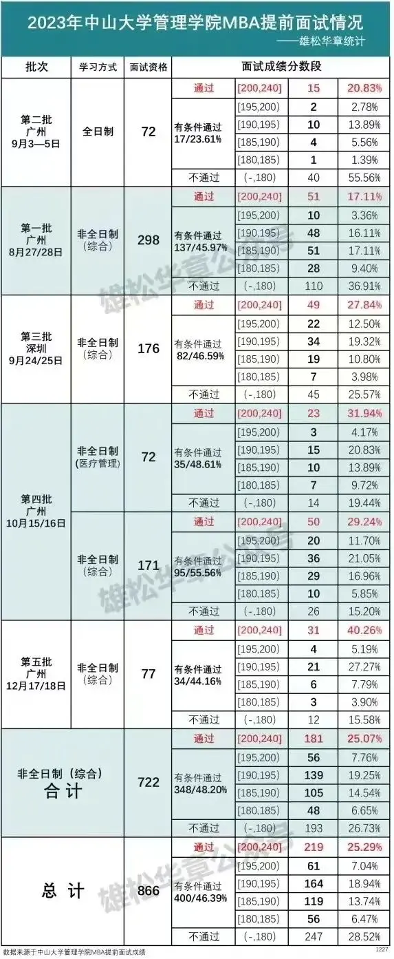 把去年2023级中大管院MBA提面各批次的通过率情况给大家看看,仅供参考!