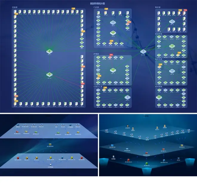 面对监狱的大网络环境,我们Emaster通过快速的发现,自动生成展示当前整个网络的运行情况和当前的网络设备、服务器及应用等的实时运行及分布情况的拓扑图。