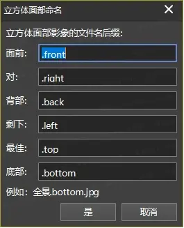 打开“源影像文件夹”,检查6个立方体面,6个单独文件分别有“前后左右上下”的英文后缀,方便区别。