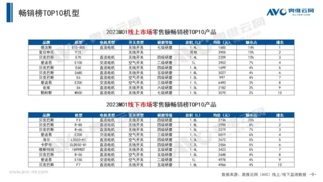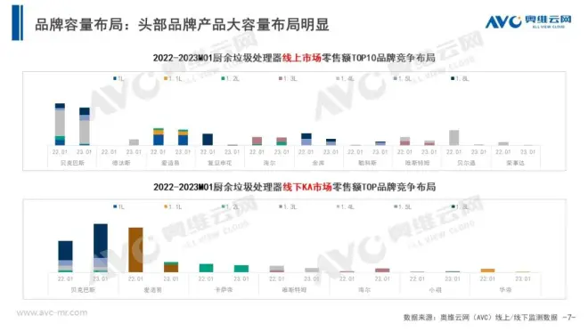 据奥维云网(AVC)监测数据显示,2023年1月线上市场1.4L容量零售额占比为37%,环比提升6个百分点,是贝克巴斯、唯斯特姆等垂直专业类品牌重点布局的容量。线下KA市场1.8L容量零售额占比为43%,环比提升17个百分点。
