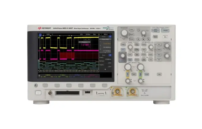 MSOX3032T 350 MHz 示波器提供 2 个模拟通道和 16 个数字通道、4 Mpts 存储器和 1,000,000 个波形/秒的更新速率,标配 8.5 英寸电容触摸屏且支持区域触摸触发功能。