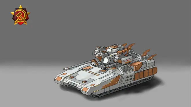而在科技飞跃期后,中小型破甲导弹的技术进步使得有着很大载员仓的苏式履带装甲车的集中火力落后与时代,虽然苏维埃联盟的军队结构可以无视这些问题,但是使得中华联邦的步兵运载战车重新变回了类似盟军的步兵战车,不过由于多功能核心构件的问题,中华联邦研发部门决定放弃更多功能性,直接简单粗暴堆砌火力。