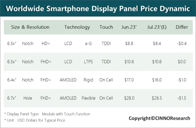CINNO Research | 7月手机面板行情:LTPS面板价格率先止跌