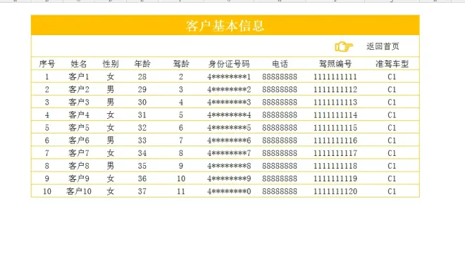 然后,在客户基本信息模块中录入姓名、年龄、身份证号码、电话、驾照编号和准驾车型。等详细完整的信息,以便于对客户进行管理和联系。