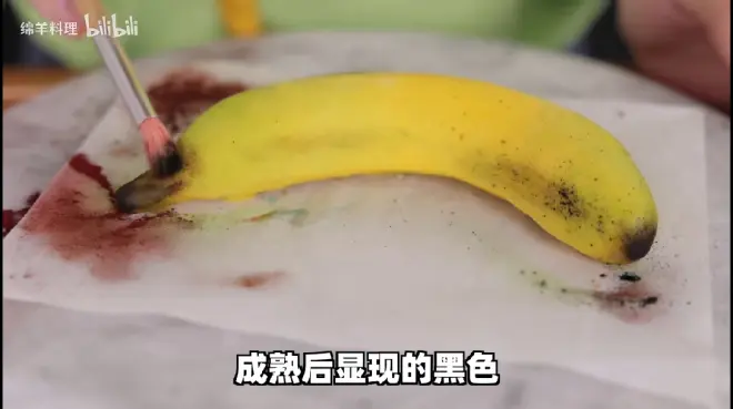 1.利用慕斯挤出香蕉果肉的头、尾;刮平