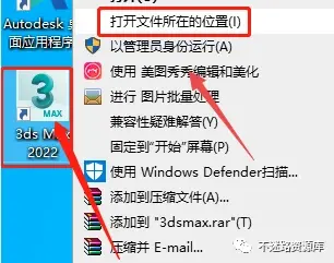 9.在桌面上找到“3ds Max 2022”软件图标,鼠标右键选择“打开文件所在的位置”