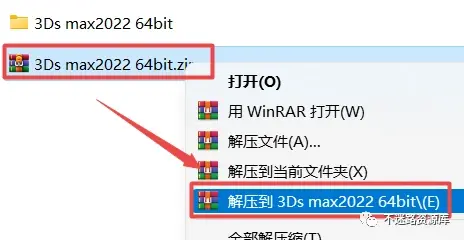 1.选中下载的压缩包,然后鼠标右键选择解压到“3Ds max2022 64bit”(没有解压选项点这里)