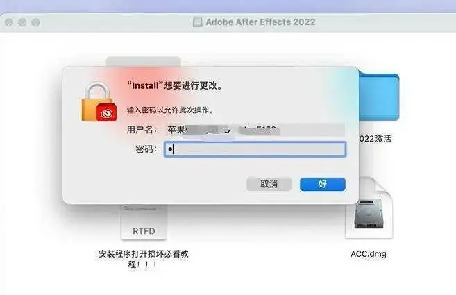 1,打开下载好的ae2022 Mac版安装包