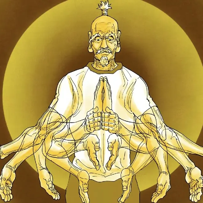 能力介绍:出掌时必须先将双手合十并祈祷,发动时会出现一尊巨大的千手观音像,并利用观音像的手来攻击对手,出招速度极快。其掌击具有相当多的可能性,组合的数量相当于无限。有“壱乃掌”、“参乃掌”等招,其威力最大的招式为“零式”,从敌人背后出现的观音将敌人拘束后,将尼特罗全部的气变成光弹进行攻击。