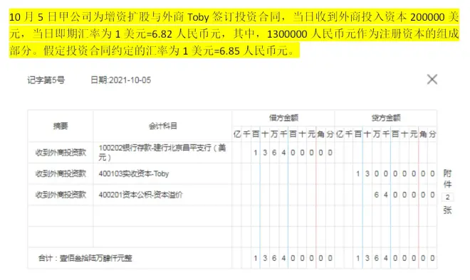 5、收到外商投资款