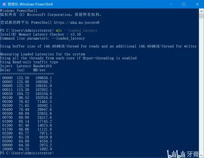 在aida64与Intel Memory Latency Checker下测试带宽延迟