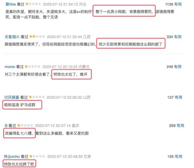 在吐槽完滤镜后,网友们又吐槽起了国产剧特有的毛病—“配音”。嗯,怎么说呢?这剧单听配音是好的,单看脸也是好的,但是就不能放在一起,感觉配音和脸就非常的不贴。不仅是不贴的问题,配音与角色口型对不上,让人非常出戏,严重影响了观看体验,这也成为被吐槽的重点。