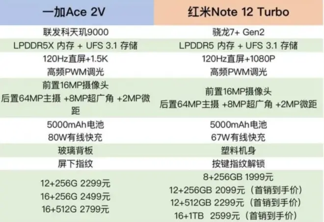 中端对决: 一加Ace 2V和Redmi Note 12Trubo谁是我的心头好