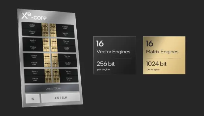 Xe内核是英特尔Xe HPG架构的基础计算构建模块。Xe HPG GPU中的每个Xe内核都配置了一组 256 位矢量引擎,旨在加速传统图形和计算工作负载。全新的Xe 矩阵扩展,旨在加速人工智能工作负载。