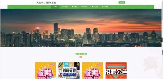 当人们打开系统的网址后,首先看到的就是首页界面。在这里,人们能够看到大连市人才招聘系统的导航条,通过导航条导航进入各功能展示页面进行操作。系统首页界面如图5-1所示:
