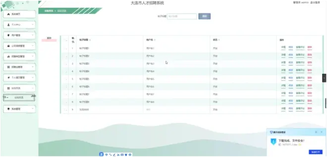 大连市人才招聘系统主要有管理员和用户两个功能模块。以下将对这两个功能的作用进行详细的剖析。