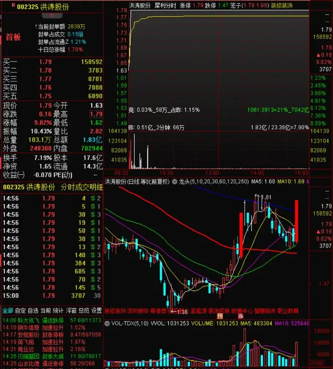 最早涨停的是洪涛股份,广东省第一家建筑装饰上市企业。