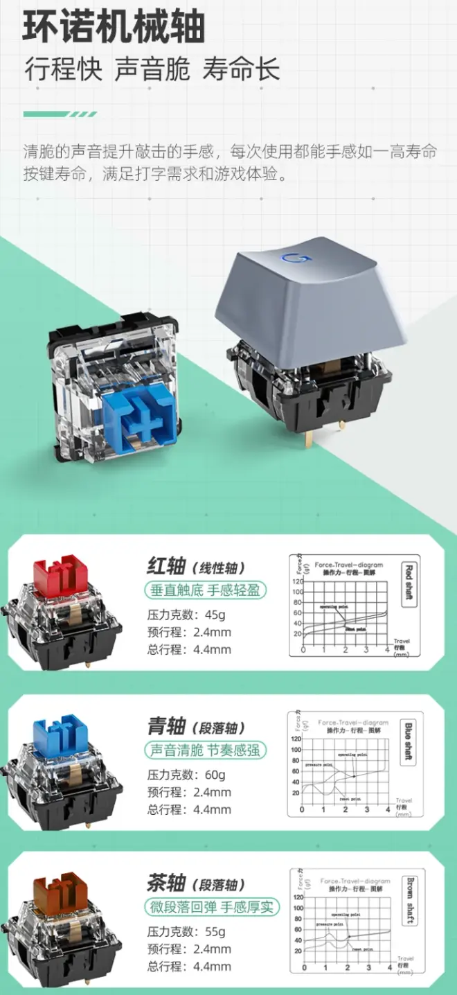 轴心材质:实色,POM,非加长轴心 , 4mm键程