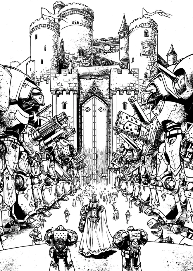 战斗持续数天,骑士团以极高的战损和守望者部队不屈的意志稳固住了这些混沌骑士的进攻,为了干掉两台掠夺者级泰坦,骑士团首次启动巨人王级骑士机甲。