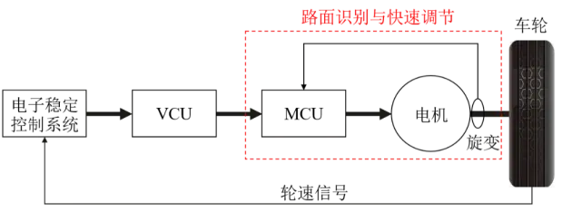 HUAWEI DATS在动态能量回收技术的基础上集成了提升车辆行驶稳定性与平顺性的电机扭矩控制技术,在传统的电子稳定控制系统扭矩干预之前,进一步缩短闭环链路。如图4所示,通过在电机控制器(MCU)内部完成电机旋变传感器感知路面变化和扭矩调节闭环,扭矩控制链路大幅缩短,总体扭矩响应时延降低至最快4ms。