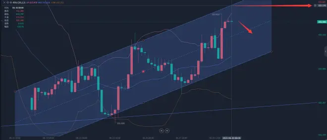 既然这样,在预期通胀的不变的情况下,就是黄金多头跟空头的厮杀了,我们看到美元现在是接近阻力位了,阻力在103.5位置,现在短线已经接近,小时级别也有筑顶情况,基本筑顶成功,美元在今天美盘前可能会出现一定的回落,依托这个目前黄金可能还要继续的上行。