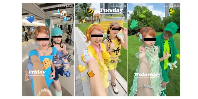 比如在生成人物图像时,为服装指定明亮的颜色,比如黄色、青柠色、粉色,或者在颜色之前加上 bright、vibrant、colorful、playful color 等关键词来强调色调,就能生成“多巴胺穿搭”的图像。