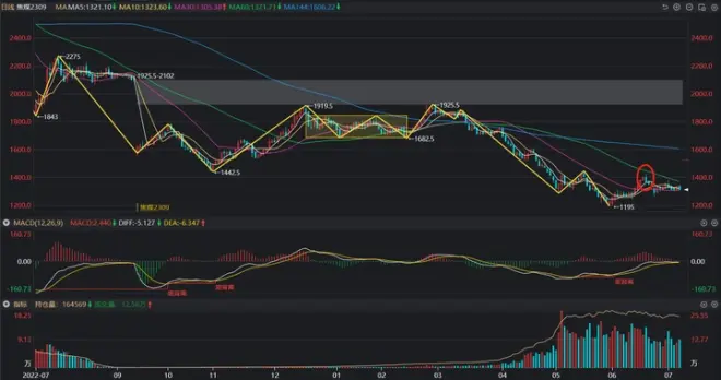 焦煤今日收阴,日线继续等待上方分型的确认,在跟棕榈纠结的这几天,似乎别的品种机会都出来了,内部结构上,30分钟一笔反弹等待分型的确认,之后一笔下下破红圈则确认日线的一笔反弹结束,届时是可以介入的,意味着日线是中枢构建,还有脱离段。再看5分钟图,夜盘及下周先看破位结构是否出现来确认30分钟的一笔反弹结束;