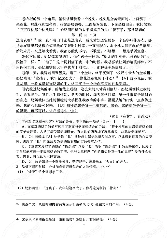 中国人民大学附属中学张老师,前几天编写好的,七年级下学期语文,第一次质量检测重点考卷,同学们好好做一下,学了这么长时间了,有没有认真学习,是否全部学透彻了,这份试卷测试一下就知道了。