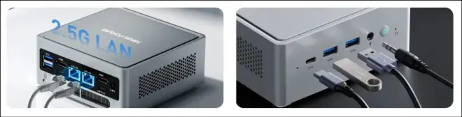 铭凡这个系列迷你主机最核心的卖点,自然就是2个RJ45网线接口(2.5Gbps)了,堪称是软路由和NAS的绝配。