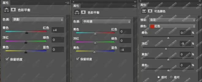 这时候皮肤的高光部分有点亮,可以把高光拉回一点。进行色彩平衡,色相/饱和度/选取颜色调整。