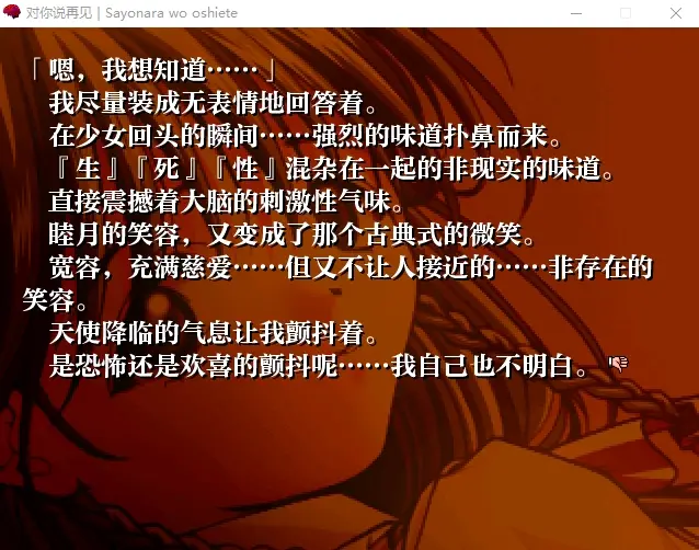 人间大苦无声,少年离乡后的一切皆是那无可言说的大苦。 所以,〔对不可言说之物表示沉默〕,否而定义,以否定之——那个自己怎么也找不到的原初的否定之前的自我,从他人的眼中也映射不出的自我,那个对自己而言像是化外天魔一般,肩头挑着草长莺飞与明月清风的孩子,那种自己都忍不住本能地自虐性否定的自我。。。请,不要对他说〔再见/sayonara〕,请抱住他,对他说: