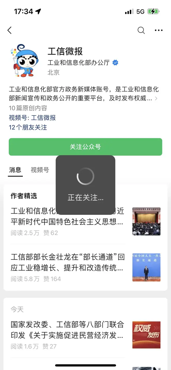 3、搜索微信公众号“工信部反诈专班”或“工信微报”“中国信通院CAICT”查询