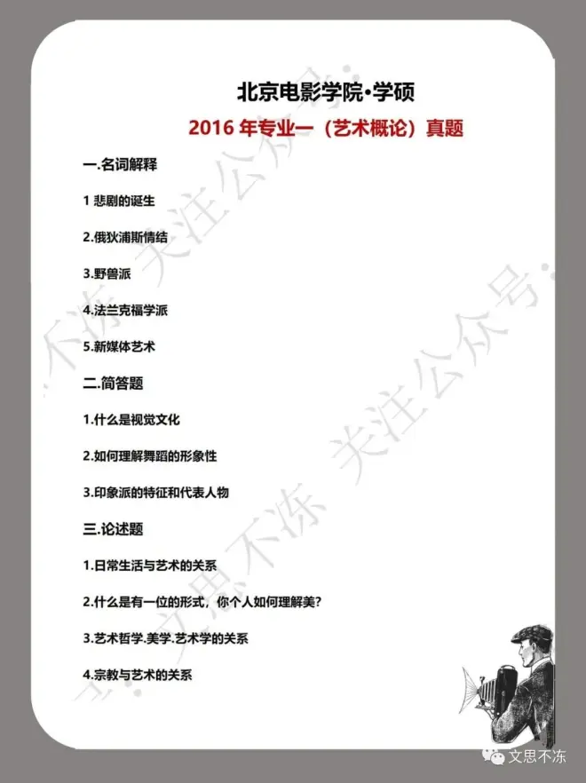 【北京电影学院|真题分享】专业一艺术概论最全真题汇总(2023——2015)请查收!
