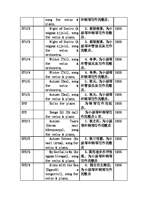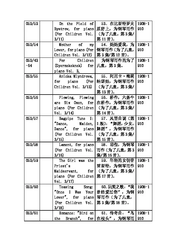 » 巴尔托克作品目录(2)