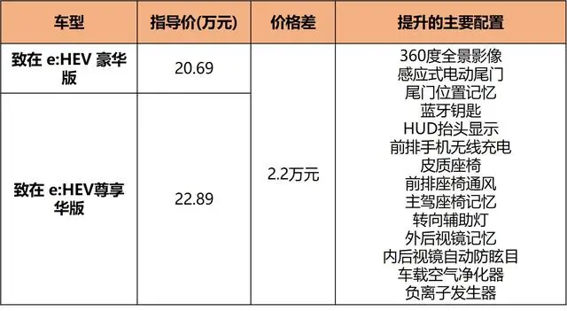 之后是指导价20.69万元的豪华版,多花1.2万元,你得到的是表中的几项配置,提升不多,也不都是必需的功能和配置,要不要上豪华版,看自己的需求吧。