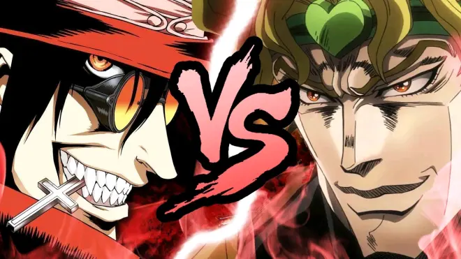 阿卡多vs迪奥 双方人物出处:《Hellsing》(《皇家国教骑士团》)与《JOJO的奇妙冒险》