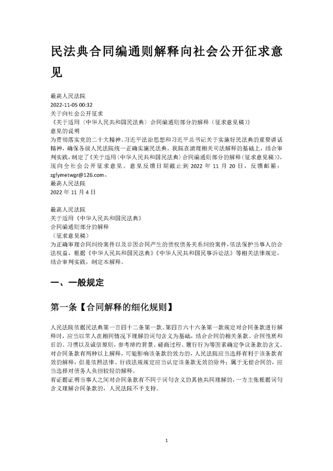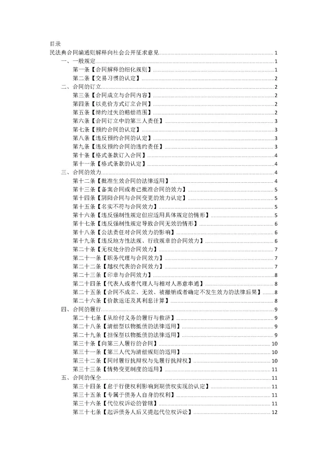 民法典 合同编 通则 司法解释(草案)的评论 (共