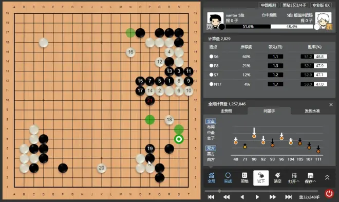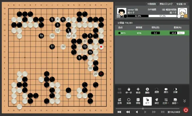 【野狐围棋】网棋棋谱 | 榴莲拌肥肠[5段] VS xantar[5段]