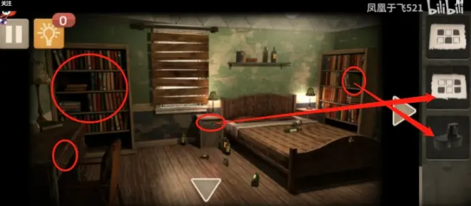 5、探索805卧室,书桌抽屉需要密码,左侧书架需要线索、床头柜需要密码(150?)。