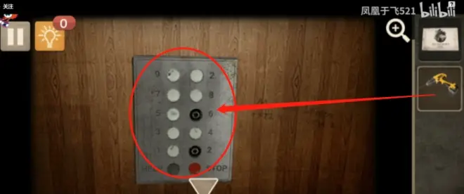 22、得到密码线索纸,进入电梯,发现坏掉的电梯按钮板。