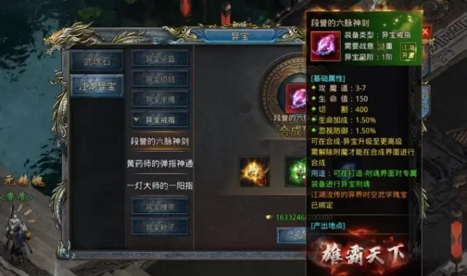 今天跟大家聊聊关于风云传奇王者之路江湖异宝的属性的游戏心得。