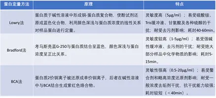 提取的样品中若含有去垢剂则需要选用BCA法进行蛋白浓度测定,若样品中含有螯合剂(EDTA,EGTA)、还原剂(DTT,巯基乙醇)和脂类等,则需要选用Bradford法进行蛋白浓度测定。