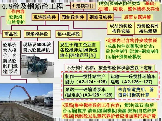 这份资料把定额项目、现浇砼工程量计算规则、预制砼工程量计算规则、钢筋工程量计算写的明明白白。彩色内容,框架清晰,图文结合,能让我们看的很明白。