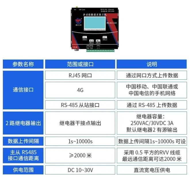多功能数据采集主机支持以太网/4G/RS-485的数据传输方式,也支持多种信号类型融为一体的数据传输方式,适用于各种方案和系统,用户可以根据使用环境进行选择。
