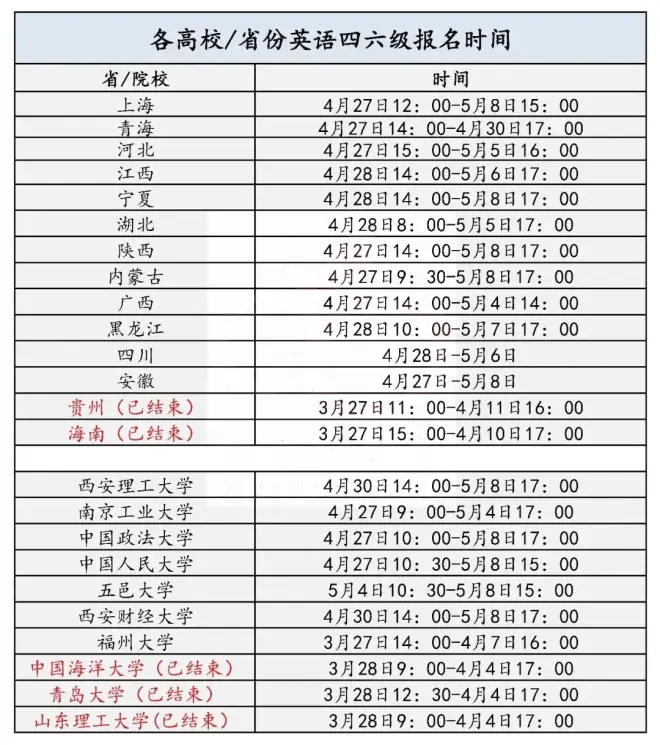 各省/校四六级时间