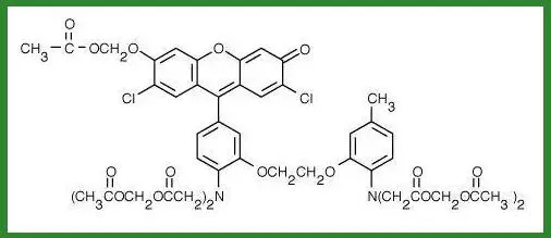 它穿透细胞膜进入细胞后被细胞内的酯酶剪切形成Fluo-3,从而被滞留在细胞内,Fluo-3 若以游离配体形式存在时几乎是非荧光性的,但是当它与细胞内钙离子结合后可以产生较强的荧光,最大激发波长为506nm,最大发射波长为526nm。