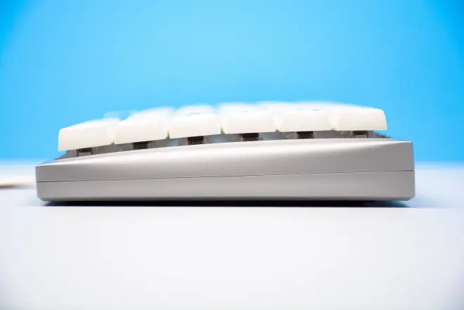 杜伽Hi Keys的键帽,采用了悬浮式的设计不过特殊的键帽外观让凸起一点都不突兀。杜伽Hi Keys的键帽经过了特殊处理,采用的是方形圆润键帽,配合着人体工学曲线,杜伽Hi Keys有一种优雅的弧度。