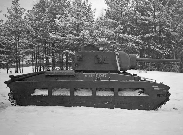 英制坦克相当奇特。该车的质量仅相当于一辆中型坦克,但装甲厚度却与KV-1一个水平。双莱兰(Leyland)柴油发动机严重限制了坦克的速度,但作为步兵伴侣来说也够用了。